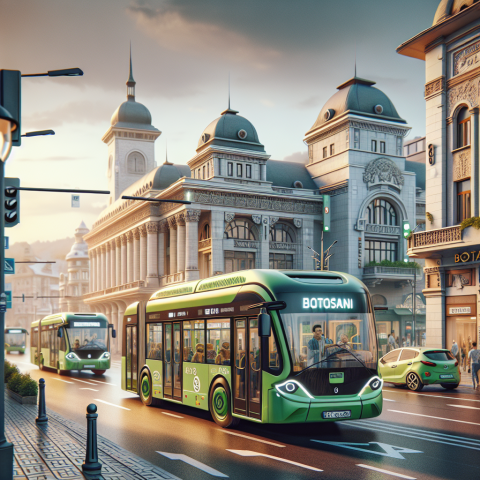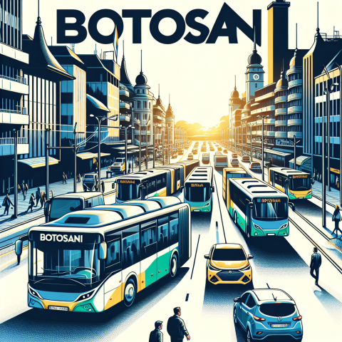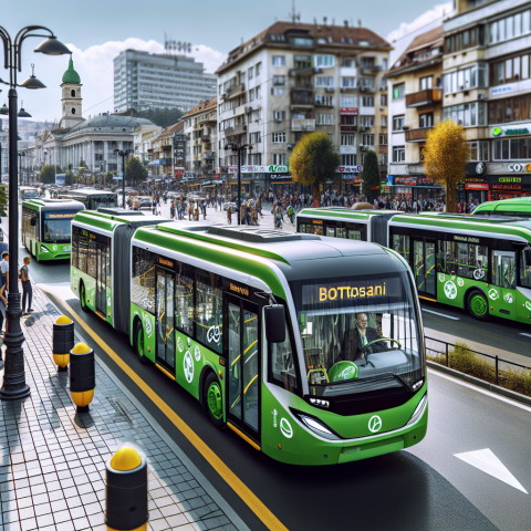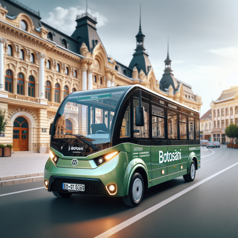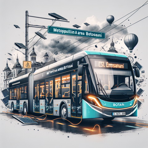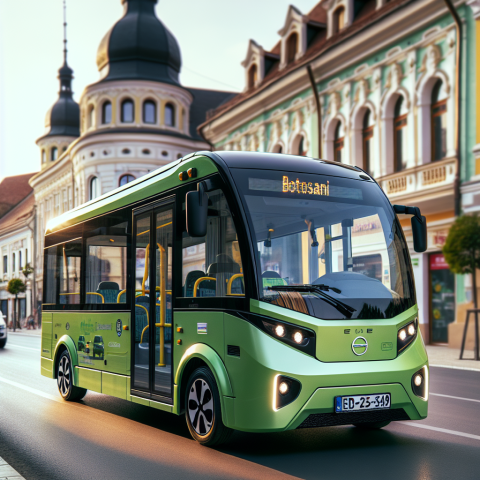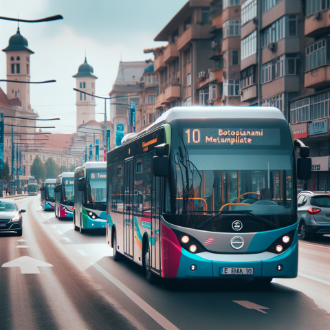 Transportul public local în zona metropolitana Botosani cu autobuze electrice marca KARSAN e-ATA 10. Cu text: Zona Metropolitană Botoșani ">
