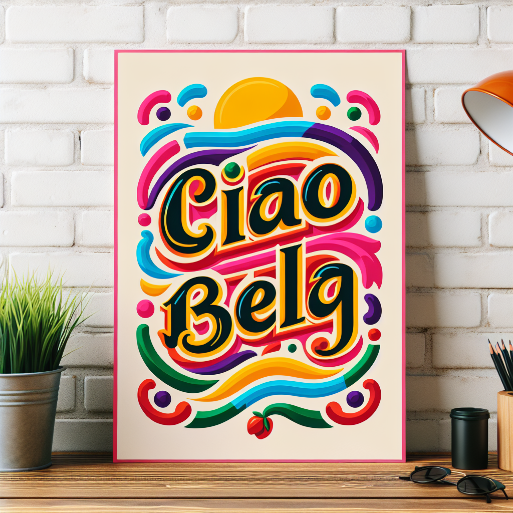 a poster with text Ciao Bella